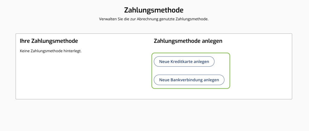 Wählen Sie anschließend aus, ob Sie eine neue Kreditkarte oder Bankverbindung zum Lastschrifteinzug anlegen möchten.