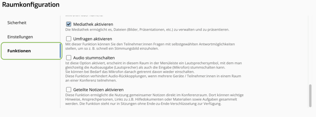 In der »Raumkonfiguration« finden Sie die folgenden Einstellmöglichkeiten für den Raum: