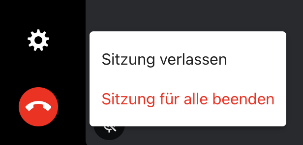 Bitte beachten Sie, dass die Sitzung in dem entsprechenden Raum einmal beendet werden muss, damit die Änderungen übernommen werden können. Treten Sie dafür bitte dem Raum bei und beenden Sie die Sitzung unten links über die Schaltfläche »Sitzung verlassen/beenden« und klicken Sie auf »Sitzung für alle beenden«, bevor Sie Änderungen an dem Raum vornehmen.