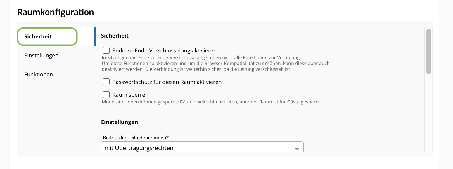 - Raum sperren (Beitritt nur für Moderator:innen möglich)